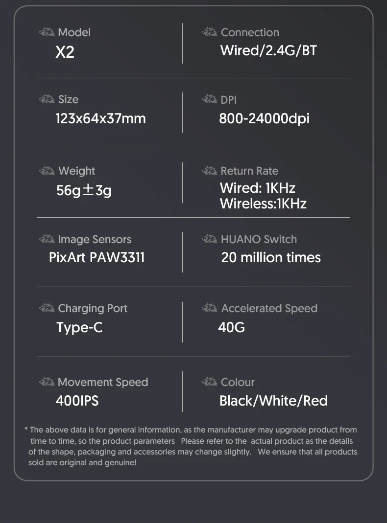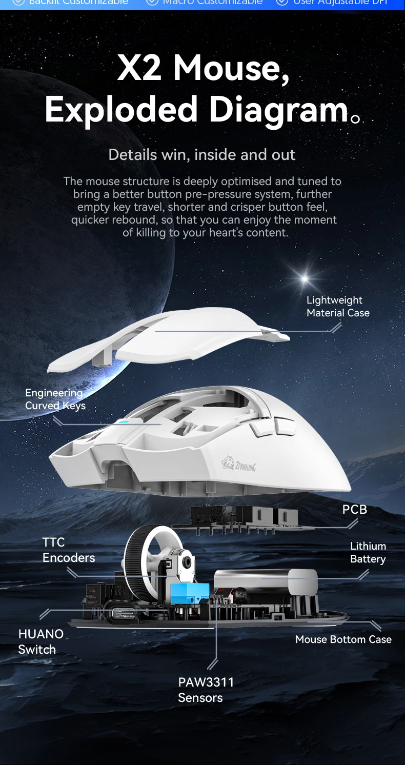 Sensor model: Pixart 3311 (12000 DPI|300 IPS|35G)